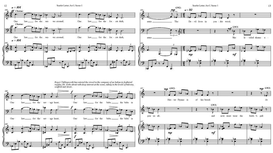 - “Our Eden Here is Love” — Hester and Arthur Dimmesdale’s love duet (soprano and tenor duet)